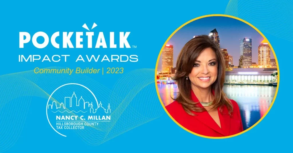 Nancy Millan, la Collecteur d'impôts du comté de Hillsborough, a reçu le prestigieux prix "Community Builder of the Year" (bâtisseur communautaire de l'année) pour ses efforts exceptionnels en matière de renforcement des liens communautaires. Mme Millan est entrée dans l'histoire en devenant le premier percepteur de Floride à utiliser les appareils portables Pocketalk, qui révolutionnent les interactions avec les clients en traduisant la parole et le texte. Grâce à sa vitesse, sa précision et sa facilité d'utilisation, Pocketalk a considérablement amélioré l'expérience globale des clients du bureau du percepteur du comté de Hillsborough.