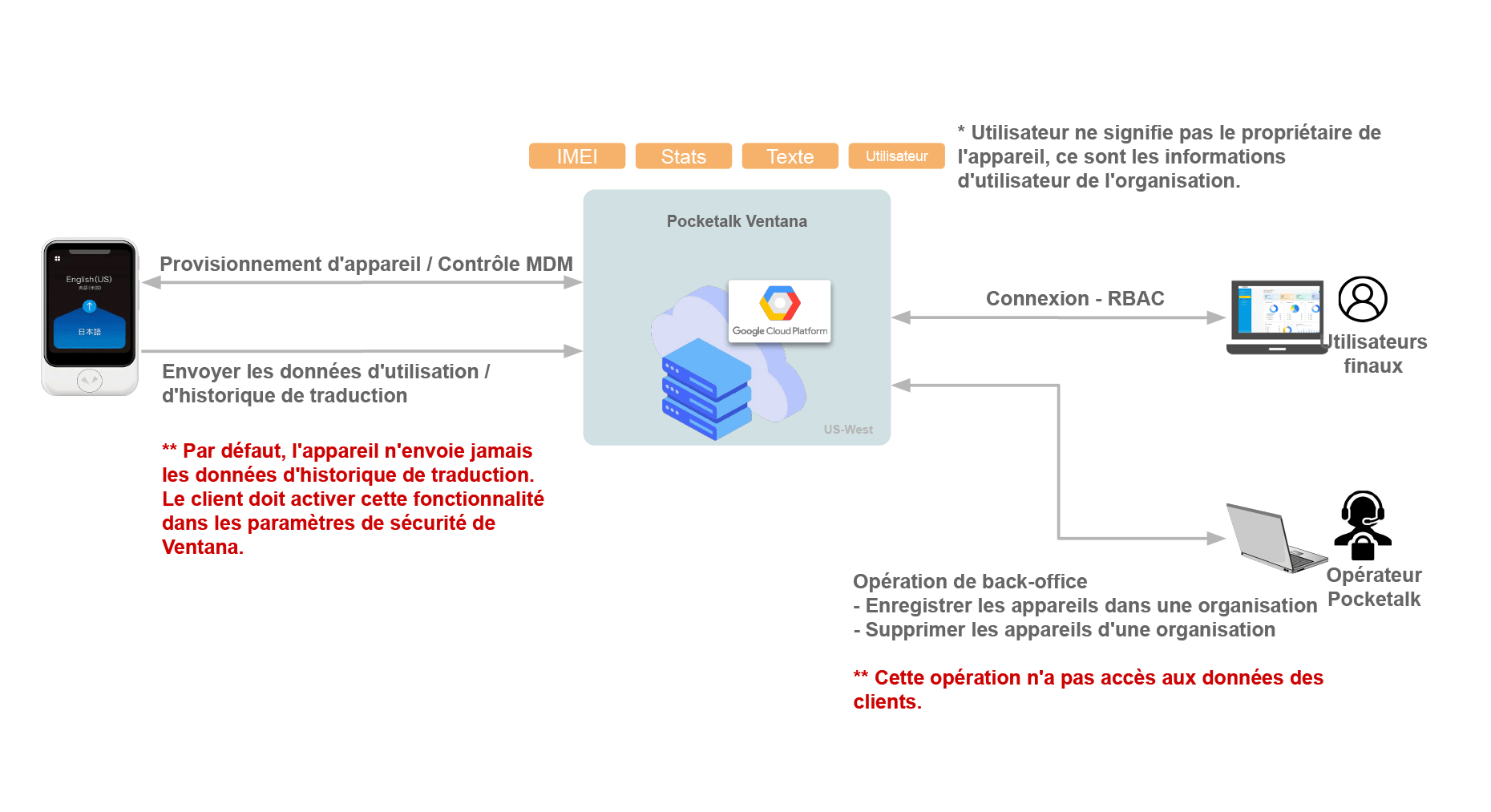 Ventana est développé et exploité par Pocketalk Corporation (ci-après dénommé “Pocketalk”) et fourni à nos clients utilisant Google Cloud Platform (ci-après dénommé “GCP”).